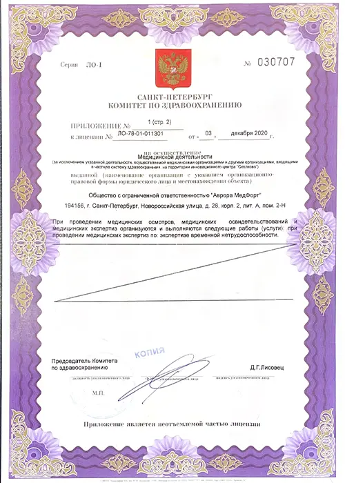 • Допуск, который даёт разрешение на осуществление медицинской деятельности в направлении наркологии и лечения зависимостей;